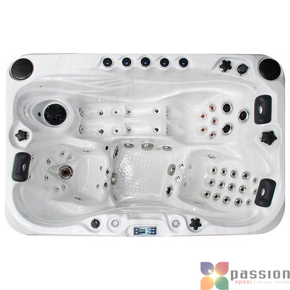 Passion Spas Sensation – это эффективное использование пространства и многообразие массажных ощущений. Смещенные ковшеобразные сиденья позволяют сидеть лицом друг к другу и при этом не делить между собой пространство для ног. А удобное лежачее сиденье дает возможность даже высокому человеку очень комфортно раскинуться в джакузи. Passion Spas Sensation оснащен огромным количеством массажных функций, включая наш эксклюзивный Aqua Rolling Massage™, который балует и массажирует ваше тело, словно настоящая массажистка.