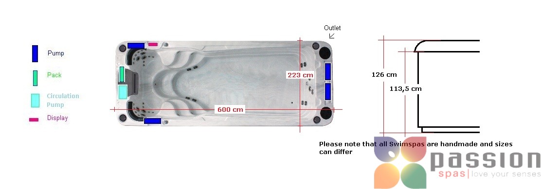 Плавные изгибы корпуса, образующие входные ступени, отличают Passion Spas Aquatic 2 от остальных моделей Passion Spas. Два глубоких, очень широких сиденья в форме чаши с массажными форсунками находятся с одного края бассейна, при этом на длинной дорожке Вам остается достаточно места для плавания. Все бассейны Passion Spas изготовлены с учетом тех же требований к экономии энергии, что и модели из линейки СПА, включая полноценное основание и теплоизоляцию чаши и корпуса.